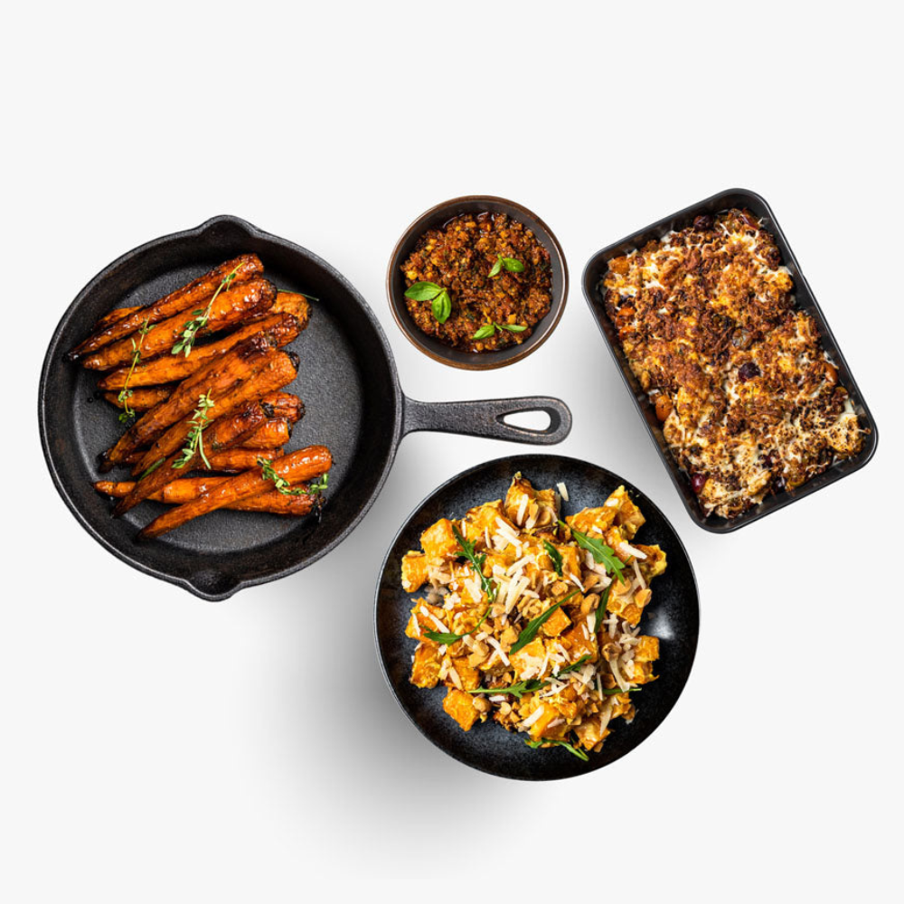 Það jafnast fátt á við heimagert pestó! Í þessari máltíð er það gratineraður þorskur með heimagerðu pestó og sætkartöflusalat í aðalrétt. Parað með hunangs grilluðum gulrótum og heimagerðu pestó.